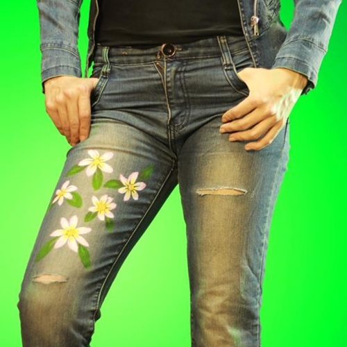 نقاشی شکوفه بهاری و گنجشک روی تیشرت