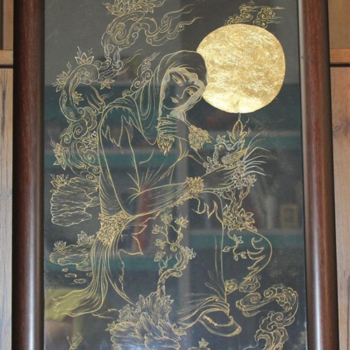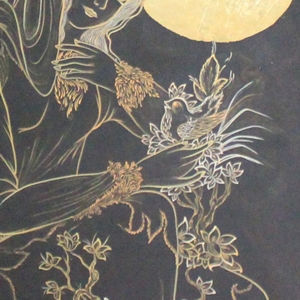 تابلوی نگارگری به روش قلمگیری(سفید قلم)و طلاکاری
